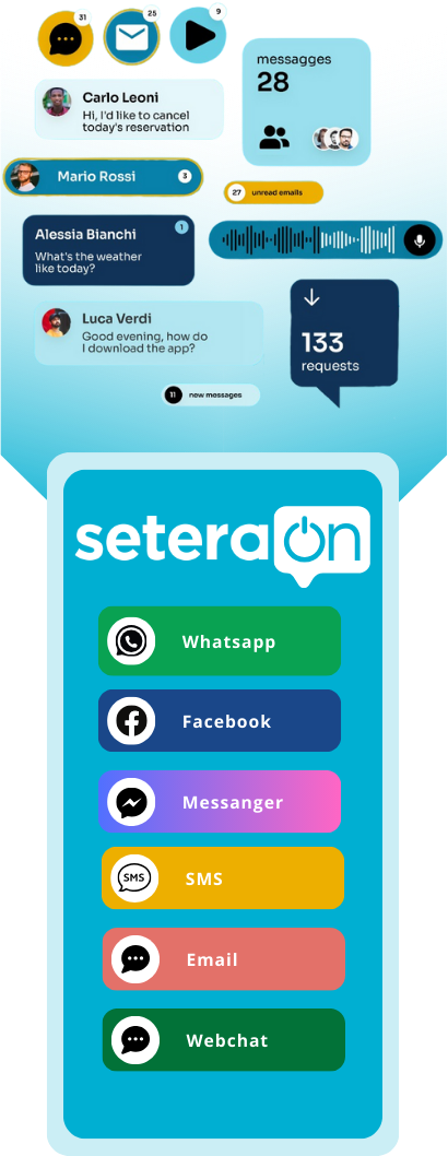 - Centralise all your conversations from Instagram, WhatsApp, SMS, Facebook, web and more on SeteraOn’s single interface